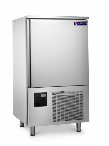 The AMPTO ABT-10US Blast Chiller & Freezer is a high-performance commercial refrigeration solution designed for professional kitchens that require rapid temperature reduction while maintaining food quality, safety, and texture. Engineered in Italy with robust stainless steel construction, the ABT-10US delivers precise chilling and freezing through advanced time-based or core-probe-controlled cycles. With the capacity to handle up to 10 full-size 26” × 18” trays, it efficiently chills hot food from cooking temperatures to safe storage levels or freezes products quickly to preserve freshness, color, and structure. Its intuitive digital control panel, automatic defrost system, and reliable refrigeration performance make it an ideal choice for restaurants, bakeries, catering operations, and high-volume food service environments.