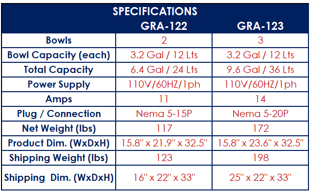 - Bowl Capacity (Each):