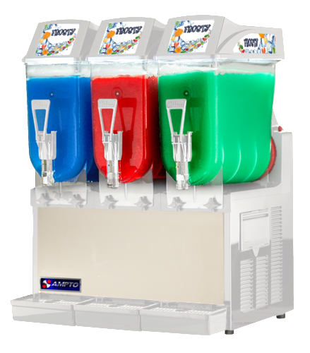 The AMPTO GRA123 Frozen Drink, Slush & Granita Machine is a high-capacity, professional beverage dispenser designed for busy cafés, bars, restaurants, convenience stores, and entertainment venues. Featuring three independent tanks, the GRA123 allows operators to serve multiple frozen beverages simultaneously, such as slush, granita, frozen cocktails, and chilled drinks. Each bowl operates independently, providing flexibility in product selection and temperature control. Equipped with a double mixing system to prevent ice buildup, adjustable consistency settings, and LED cold-light illumination, the GRA123 ensures smooth product texture, attractive presentation, and reliable performance. Its robust construction and NSF-6 certification make it suitable for continuous commercial use, including milk-based beverages.
