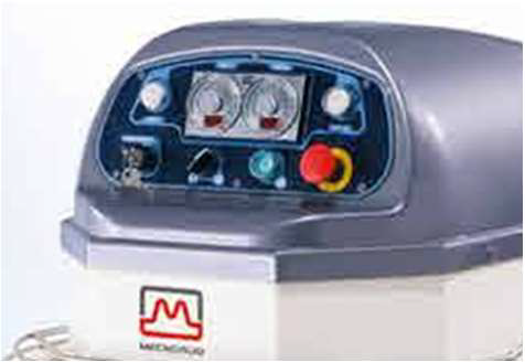 The AMPTO Mecnosud SP250 Spiral Mixer is an extra-large capacity, industrial-grade dough mixer engineered for high-volume pizza factories, industrial bakeries, and central production kitchens. Designed to handle extremely large dough batches with consistency and reliability, the SP250 features a robust stainless steel bowl, spiral hook, and shaft, supported by a heavy steel frame for continuous commercial operation. Equipped with two independent motors-one for the spiral hook and one for the bowl-and a trapezoidal belt drive system, this mixer delivers powerful yet quiet performance. Dual timers, reversible bowl rotation, and a durable mechanical control panel provide precise control for large-scale dough production while maintaining dough quality and structure.