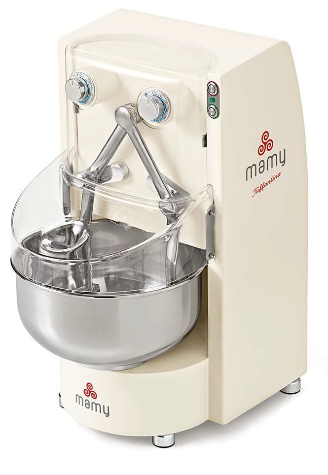 The AMPTO Mecnosud T7E-AV-MAMY Twin Arm Countertop Mixer is a compact, professional dough mixer designed to replicate traditional hand-kneading for superior dough quality. Ideal for pizza restaurants, pastry shops, and artisan kitchens, this mixer uses a twin arm mixing system that gently stretches and folds dough, promoting optimal gluten development while minimizing oxidation. With variable speed control, an integrated timer, and a protective plexiglass safety cover, the T7E-AV-MAMY delivers consistent results across a wide range of dough types. Its space-saving countertop design and elegant finish make it a perfect fit for modern professional kitchens that prioritize dough integrity and performance.