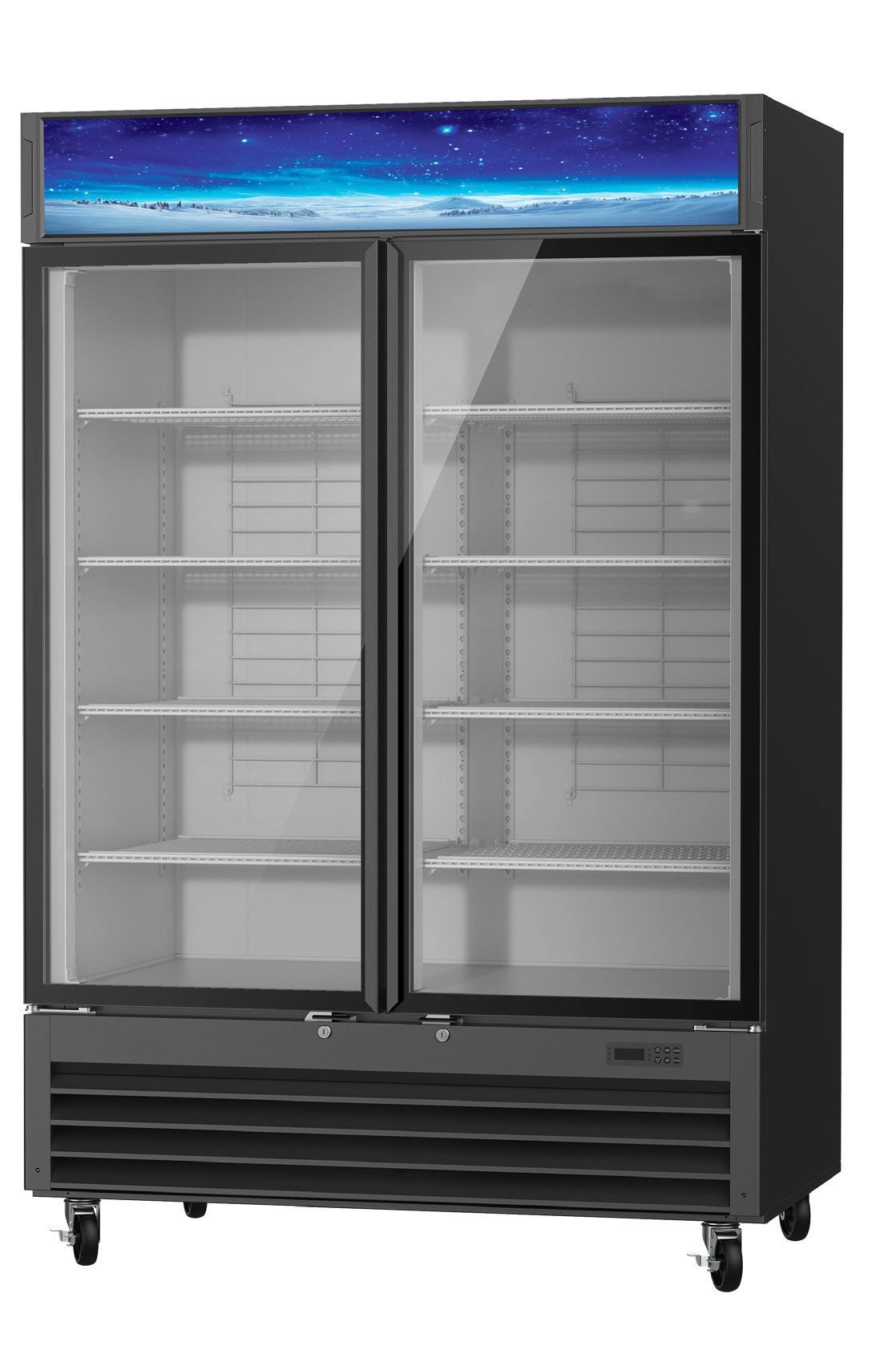 The Blue Air BGF49B-HC is a high-capacity, energy-efficient glass-door merchandiser freezer engineered to deliver exceptional product visibility and consistent low-temperature performance for commercial environments. Featuring two triple-pane glass doors, bright LED interior lighting, and a durable steel construction, it is ideal for showcasing frozen foods and beverages while maintaining temperatures between -10°F and 5°F. Its self-contained, bottom-mounted refrigeration system ensures reliable cooling and ease of maintenance, while R-290 hydrocarbon refrigerant enhances environmental efficiency. With digital temperature controls, adjustable shelves, and a built-in door-open alarm, the BGF49W-HC combines functionality, durability, and merchandising appeal for retail stores, supermarkets, and food service operations.