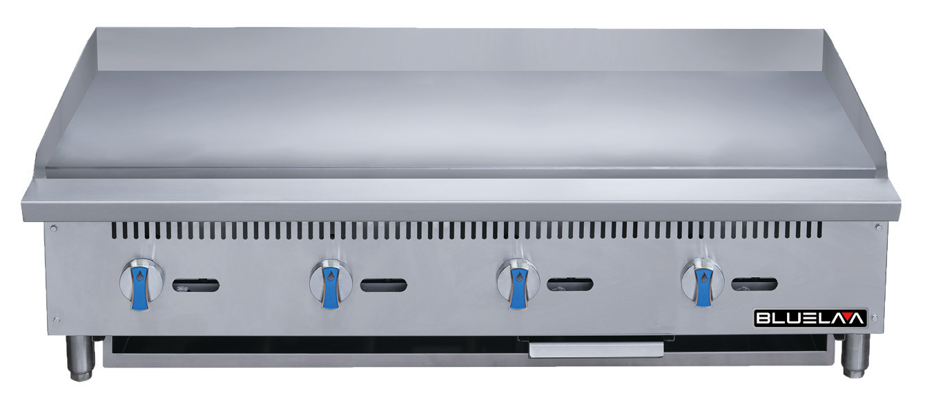 The Blue Air BLGM48-20D Griddle is built for durability, efficiency, and consistent performance in any commercial kitchen. Compact yet powerful, it features a 30,000 BTU per burner with an Ever-Ready standby pilot, delivering the reliable heat output needed for high-volume cooking.