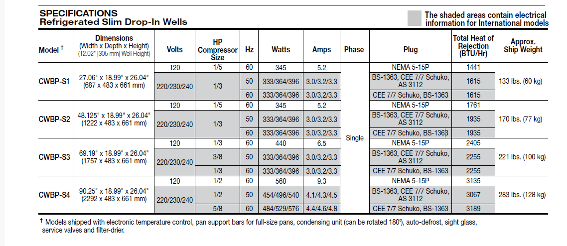 • Full-size refrigerated well arranged in a lengthwise (slim) configuration