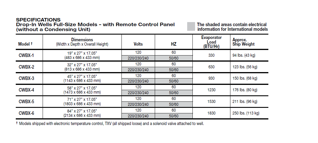 • Equipped with solenoid valve attached to the cold well and TXV valve shipped loose