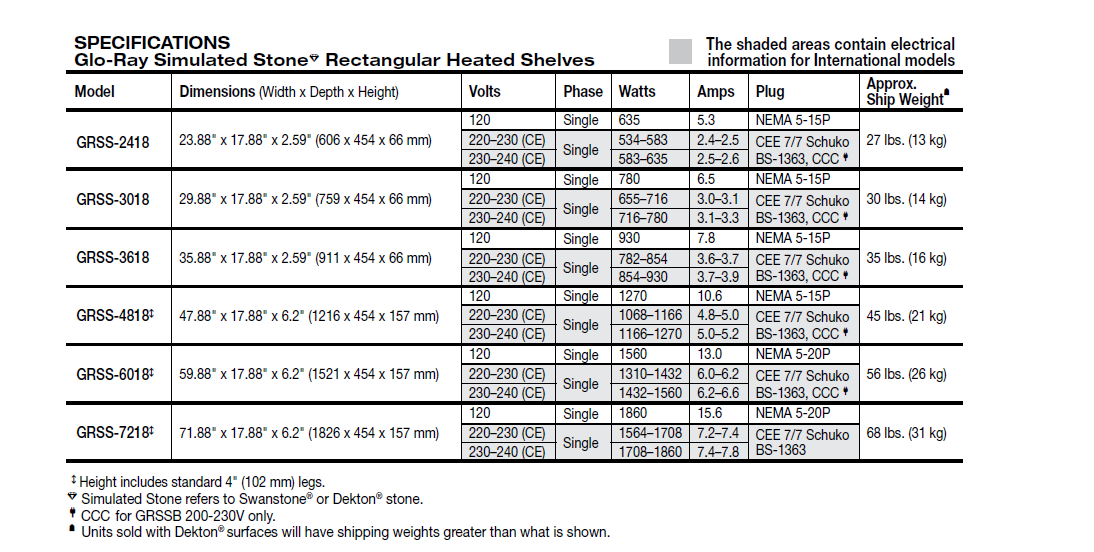 - Glo-Ray® Simulated Stone Rectangular Heated Shelves