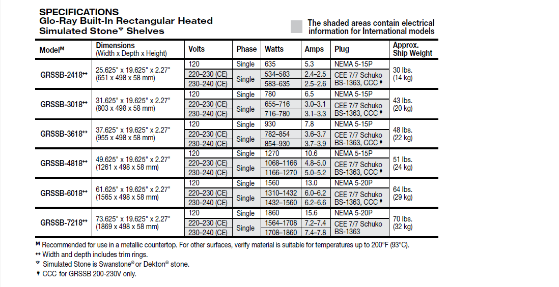 - Glo-Ray® Built-In Rectangular Heated Simulated Stone Shelves
