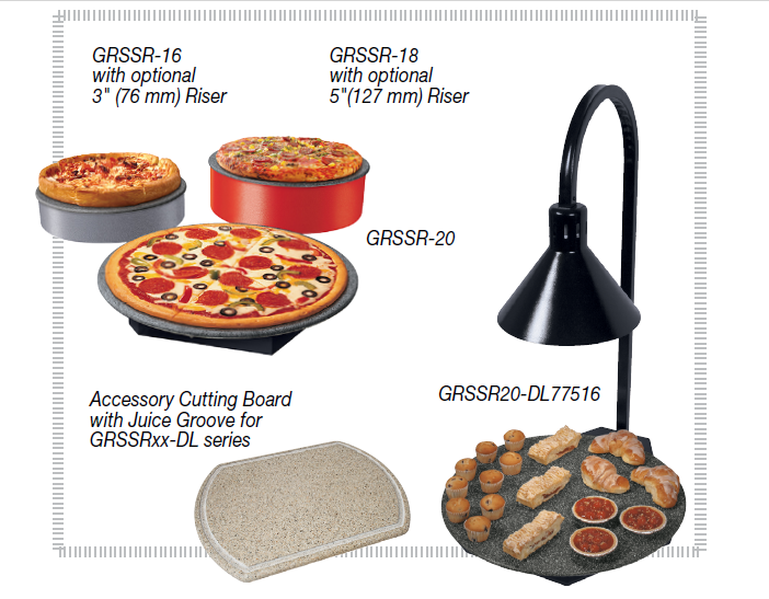 Hatco GRSSR Series Glo-Ray® Simulated Stone Round Portable Heated Shelves are designed to combine efficient food warming with enhanced visual presentation for front-of-house applications. Constructed with food-safe simulated stone (Swanstone®) surfaces, these units provide uniform heat distribution across the entire surface while maintaining hot food at safe serving temperatures. Ideal for buffet lines, catering displays, and hors d’oeuvre stations, the GRSSR series blends seamlessly with décor through multiple color and design options. Available with or without decorative lamp assemblies, and supported by adjustable thermostatic controls, these heated shelves deliver both performance and aesthetic appeal in demanding commercial environments.