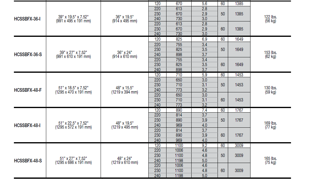 • Available in 24", 36", and 48" widths with F, I, and S depth options
