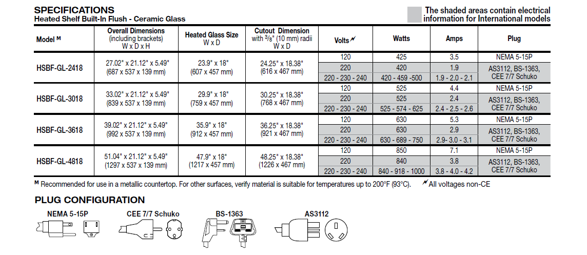 - Heated Shelf Built-In Flush - Ceramic Glass