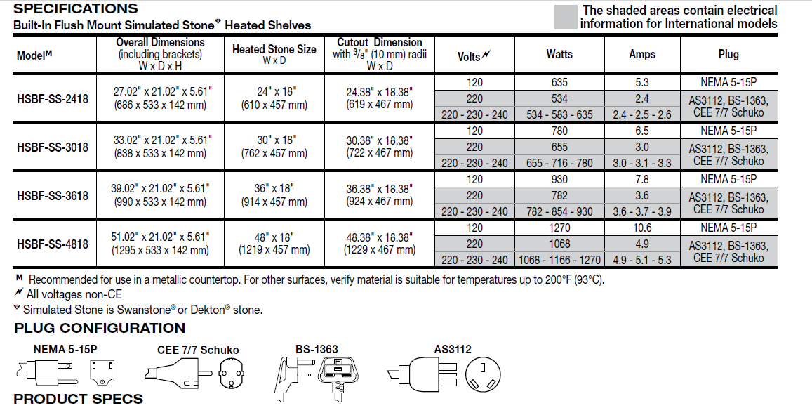 - Built-In Flush Mount Simulated Stone Heated Shelves