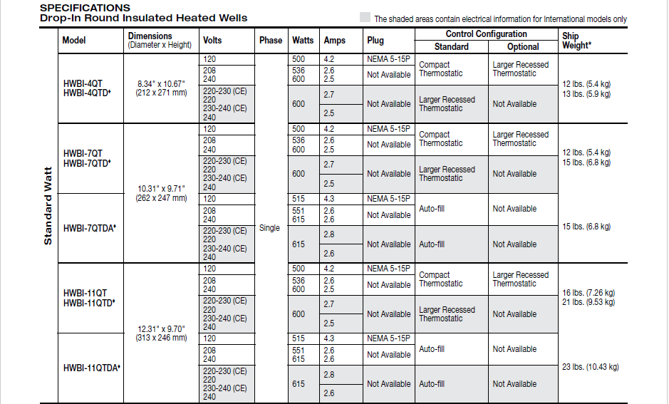 • Standard and high watt configurations available (4-quart models available in standard watt only)