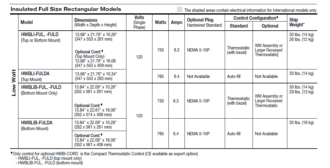 • Available in Low Watt (120V only), Standard Watt, and High Watt configurations
