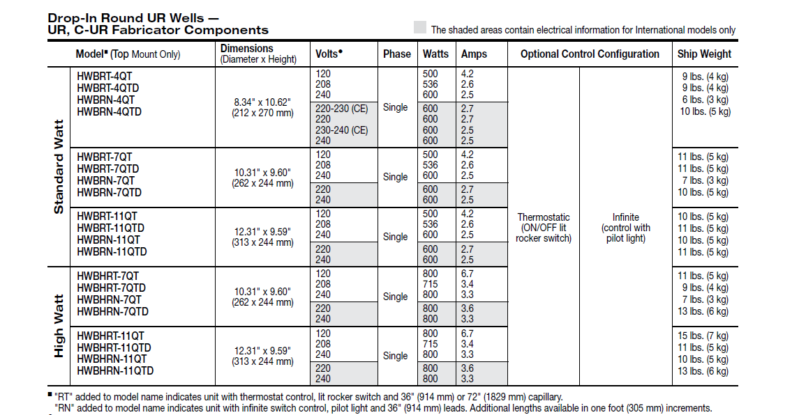 - Drop-In Round Heated Wells - UR, C-UR Fabricator Components