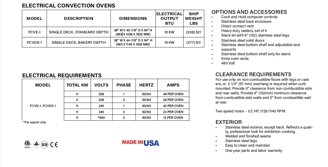 Imperial PCVE-1 Electric Convection Oven – Single Deck Commercial Oven, 11 kW, Turbo-Flow Air System, Programmable Controls, Stainless Steel Construction
