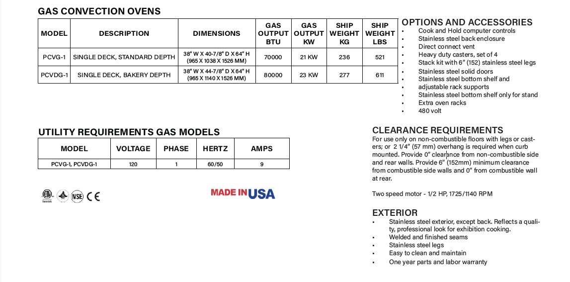 Imperial PCVG-1 Gas Convection Oven - Single Deck Commercial Oven, 70,000 BTU, Turbo-Flow Air System, Programmable Controls, Stainless Steel Construction
