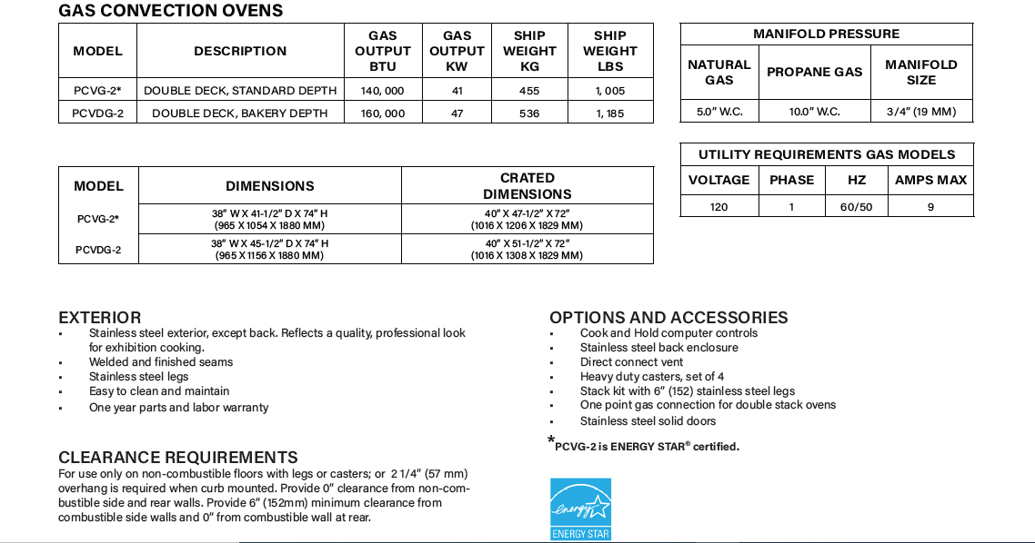 The Imperial Gas Double Convection Oven is designed for high-capacity, high-efficiency cooking across all models in the series. Featuring a Turbo-Flow air circulation system, this oven ensures consistent and even heat distribution throughout both cooking chambers, reducing shrinkage while enhancing moisture retention and food quality. The dual-deck configuration allows simultaneous cooking of different menu items, maximizing productivity in busy commercial kitchens. Equipped with programmable controls, Cook ‘N Hold functionality, and a dual-speed fan system, the PCVG series delivers precision, versatility, and energy efficiency. Built with durable stainless steel construction and ENERGY STAR® certification, this oven is ideal for restaurants, bakeries, and foodservice operations demanding performance and reliability.