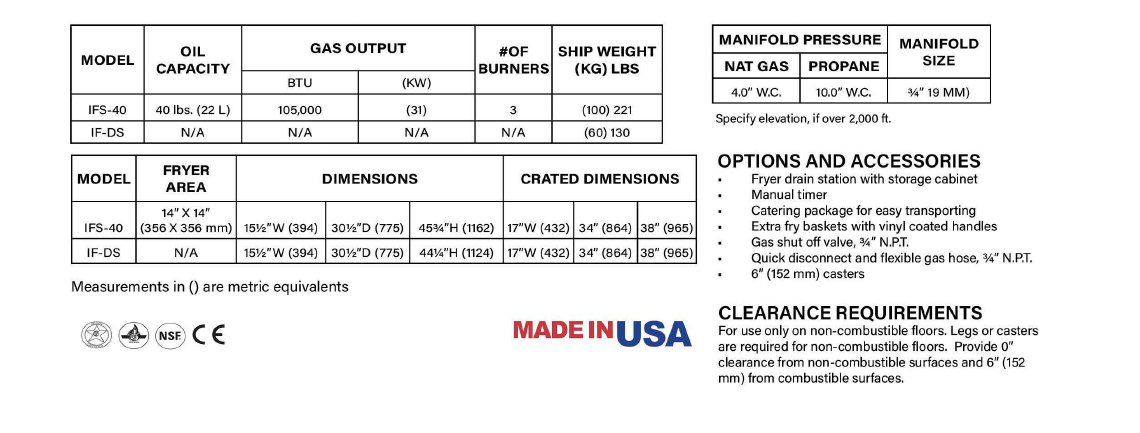 The Imperial IFS-40 Tube Fired Gas Fryer is engineered for high-efficiency performance and durability in demanding commercial kitchens. Featuring powerful cast iron tube-fired burners with a total output of 105,000 BTU, this fryer delivers rapid heat recovery and even heat distribution for consistent cooking results. Its heavy-duty stainless steel frypot is robotically welded to minimize leaks and enhance longevity, while the large cool zone helps extend oil life by trapping food particles away from the frying area. Equipped with a millivolt temperature control system and snap-acting electronic thermostat, the IFS-40 ensures precise temperature regulation between 200°F and 400°F. Designed for ease of operation, cleaning, and maintenance, this fryer is ideal for restaurants, foodservice operations, and high-volume frying applications across all available configurations.