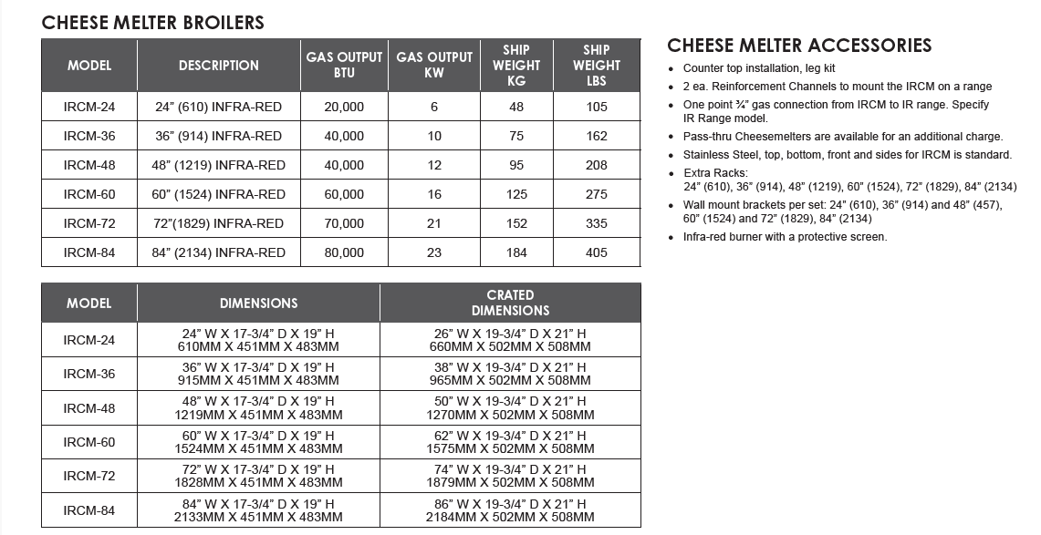 - Designed for rapid cheese melting, finishing, and broiling applications