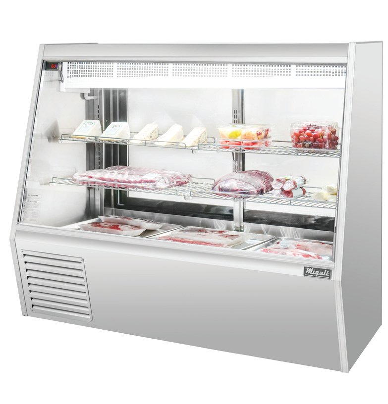 The ergonomic design includes sliding rear glass doors, LED interior lighting, and cantilever chrome-plated shelves to highlight products attractively. For user convenience, the unit comes with pre-installed casters and leveling feet, a rear water drain tube, and a top section floor drain to support efficient cleaning and operation. Using eco-friendly R290 hydrocarbon refrigerant, the case is also DOE certified for energy efficiency and backed by the Migali® Protection Plan, which includes a 2-year parts and labor warranty plus a 5-year compressor warranty.