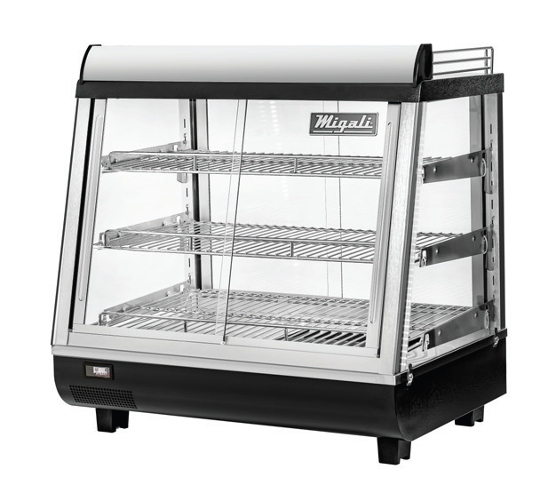 The Migali® C-HCT27-S 27" Wide Hot Countertop Display Case is designed to showcase hot food items with both style and functionality. Featuring a straight glass design with front and rear sliding glass doors, it provides convenient access for both staff and customers. Its ergonomic construction is complemented by a durable stainless steel interior and exterior front, with glass-covered black sides for a sleek, modern look.