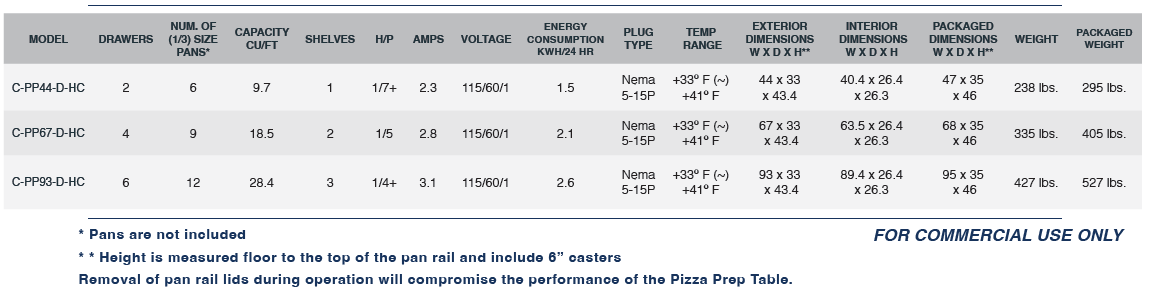 With 28.4 cubic feet of refrigerated storage, the C-PP93-D-HC offers ample capacity for bulk ingredients and supplies. Its six drawers glide smoothly on stainless steel slides with nylon wheels and are built with recessed handles and rounded corners for ergonomic and safe operation. Above the drawers, six adjustable shelves provide flexible organization. Constructed with a polished stainless steel interior and exterior, the unit is both durable and easy to clean. Powered by a forced-air refrigeration system that circulates eco-friendly R290 hydrocarbon refrigerant, it consistently maintains cabinet temperatures between 33°F and 41°F. A digital temperature controller with external display ensures quick, accurate oversight during busy service periods.