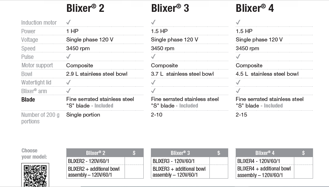 The Robot Coupe BLIXER® 3 is a high-performance commercial countertop food processor designed for blending, chopping, and producing texture-modified foods with speed and precision. Powered by a 1.5 HP direct-drive induction motor operating at 3450 RPM, it ensures rapid and consistent processing results. Featuring a 3.7-liter stainless steel bowl with a leakproof lid, integrated scraper arm, and fine-serrated twin blade assembly, it delivers smooth and homogeneous textures even for small quantities. Ideal for healthcare, catering, and professional kitchens, the BLIXER® 3 efficiently transforms raw or cooked ingredients into purées, emulsions, and liquid preparations in seconds.