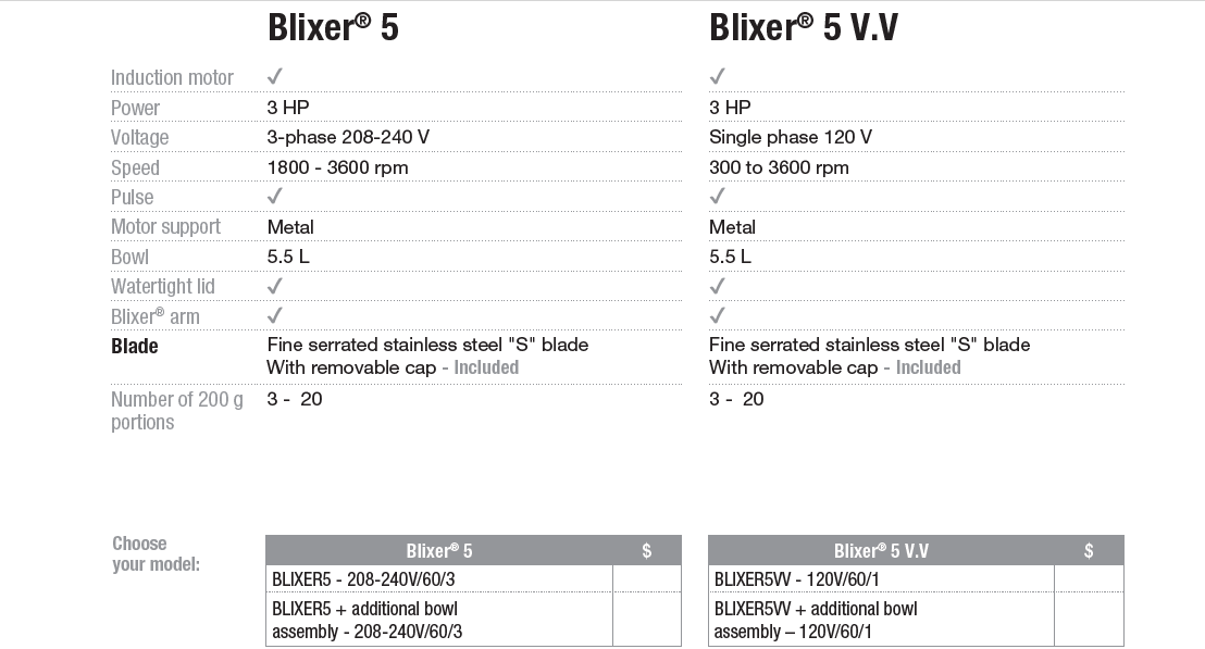 Robot Coupe BLIXER® 5 V.V. Variable Speed Commercial Food Processor, 2 HP Bowl Cutter Mixer, 5.5L Stainless Steel Blixer for Texture-Modified Food Preparation.