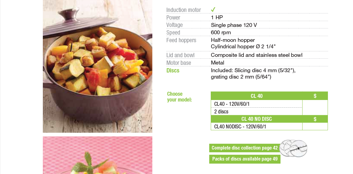The Robot Coupe CL40 Vegetable Preparation Machine is a powerful and efficient commercial food processor designed for continuous vegetable processing in professional kitchens. Equipped with a 1 HP industrial induction motor operating at 600 RPM, it delivers consistent performance for slicing, grating, shredding, dicing, and French fry preparation. Featuring a dual hopper system with a half-moon hopper for bulky vegetables and a cylindrical hopper for long or delicate produce, it ensures versatility and precision. Its lateral ejection system enhances workflow efficiency, while durable stainless steel components and easy-to-clean parts make it an ideal solution for medium-volume foodservice operations.