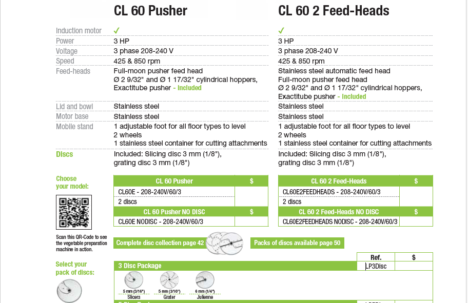 - Slicing Discs (0.6 mm to 25 mm, including cooked potato discs)