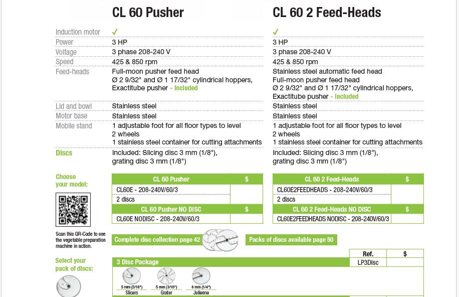 - Julienne Discs (multiple sizes and specialty cuts)