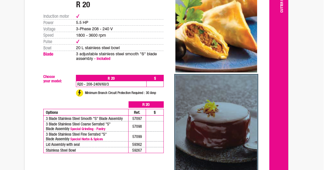 The Robot Coupe R20 Vertical Cutter Mixer is a powerful, high-capacity commercial food processor designed for demanding kitchen environments requiring efficient processing of both small and large batches. Equipped with a robust 5.5 HP direct-drive induction motor and dual-speed functionality, it delivers consistent and precise results for chopping, mixing, emulsifying, grinding, and kneading a wide range of ingredients. Ideal for meats, vegetables, sauces, and smooth textured preparations, the R20 ensures uniform consistency with minimal processing time. Its durable stainless steel construction and ergonomic design make it a reliable solution for high-volume professional kitchens.
