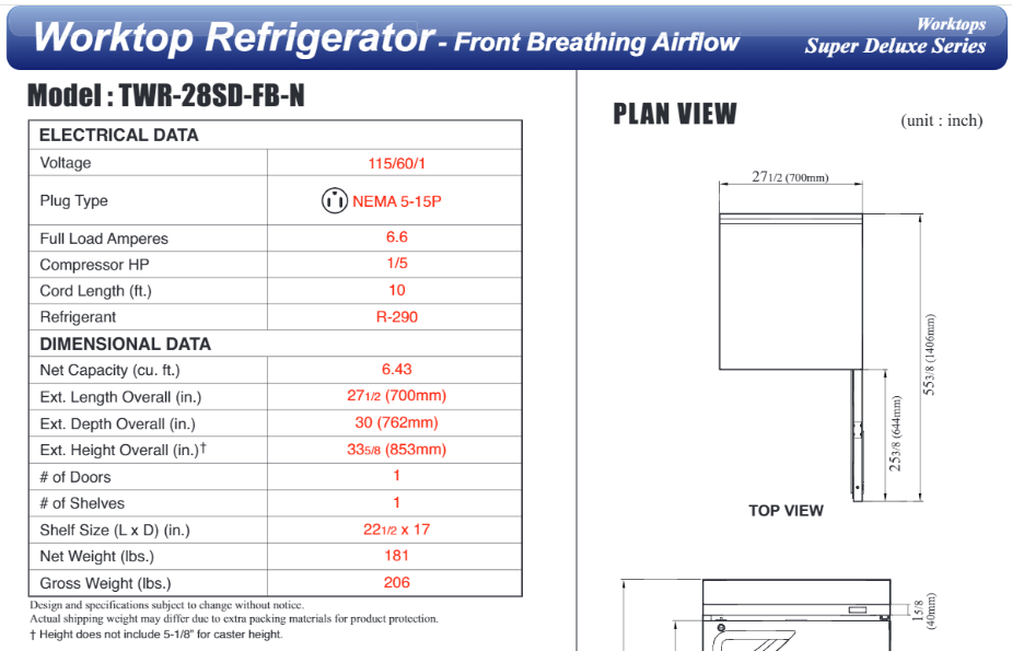With its sleek design and practical features, the Super Deluxe Worktop Refrigerator is an essential addition to any commercial kitchen. Whether used in restaurants, cafes, or foodservice establishments, this refrigerator offers reliability, efficiency, and versatility for all your refrigeration needs. Contact sales for lead time and availability.